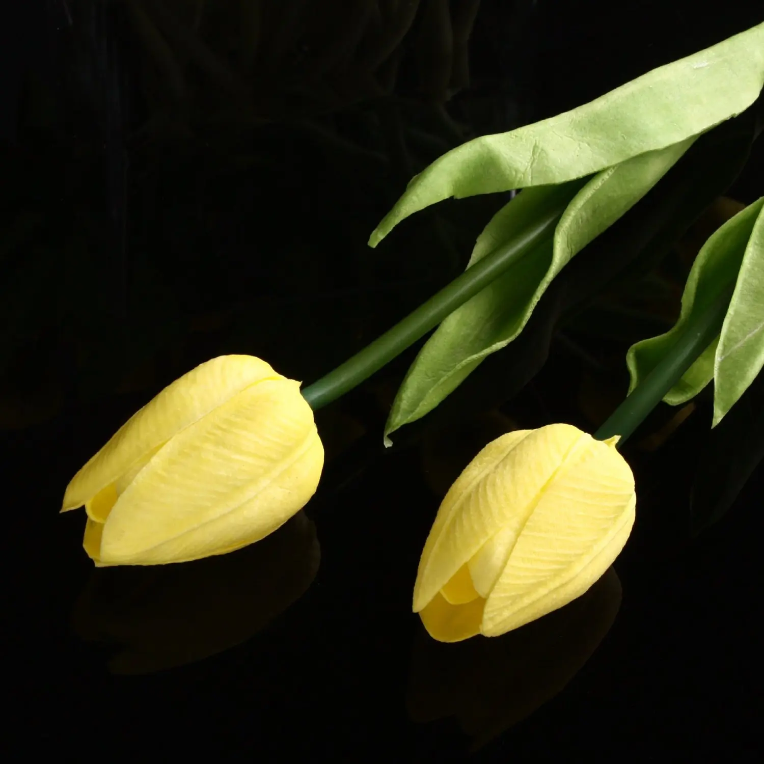 | Bestselling 10pcs Yellow Latex Tulip Flower with Leaves For Wedding Decorate |