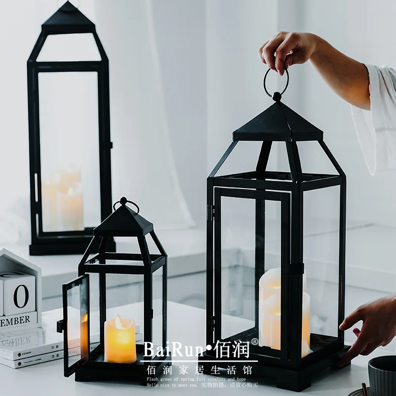 | Black Glass Candle Holder Small Retro Lantern Portable Candlestick for Wedding Decoration Centerpieces Stands Bestselling GG50zt |