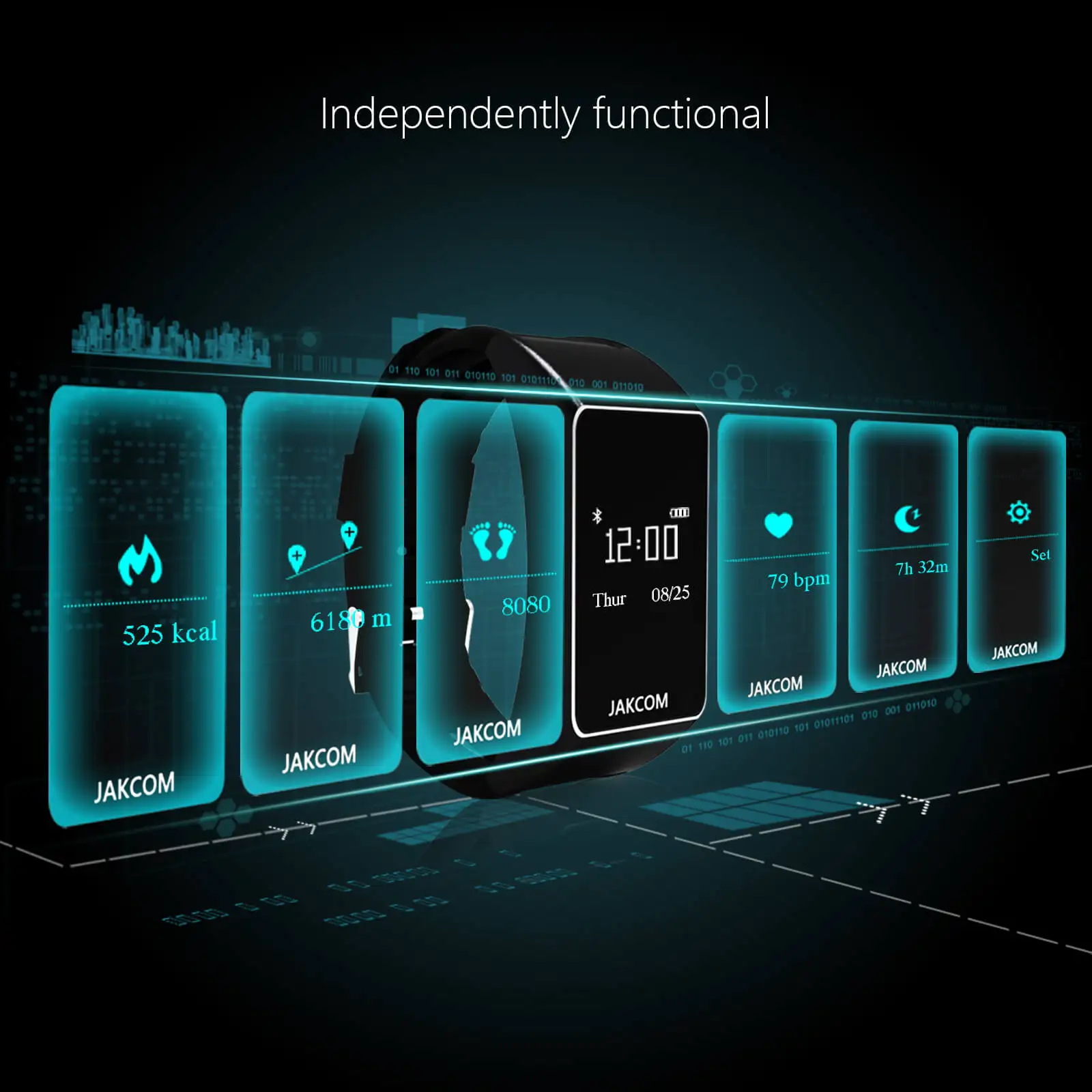 JAKCOM B3, with six-axis sensor placed within and self-developed new motion algorithms of JAKCOM technology, can not only accurately record and show user’s motion information like step number, calorie and distance, but also sleeping duration and sleeping situations as well.