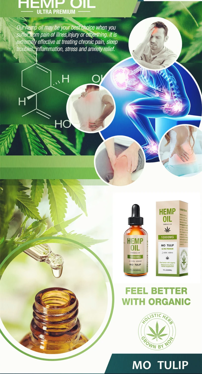 | MO TULIP 30ml 10000mg Hemp CBD Organic Essential Oil Hemp Seed Oil Herbal Drops Body Relieve Stress Oil Skin Care Help Sleep |