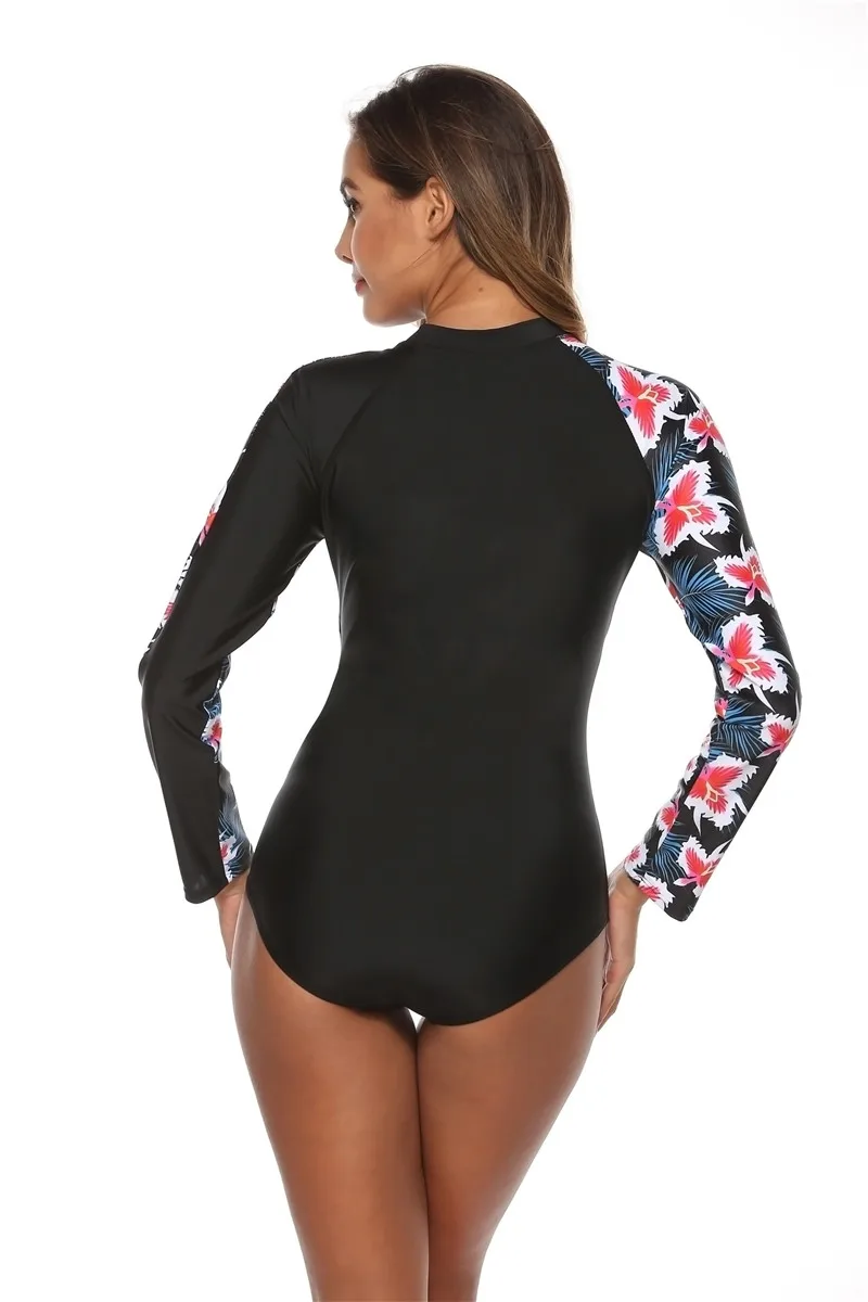 | Zipper One Piece Swimsuit Floral Print Bathing Suit for Women Long Sleeve Monokini Best Selling 2020 Rushguard Woman Sport S- XL |