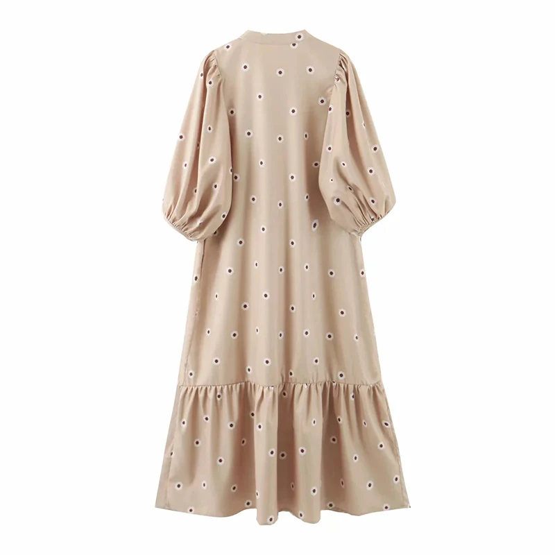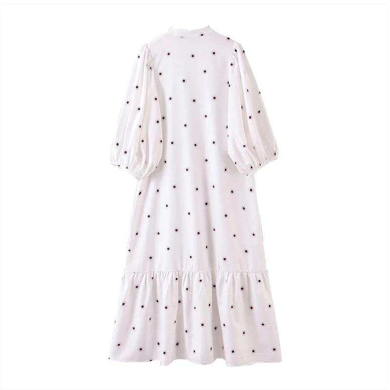 | Aachoae Women Loose Print White Dress O Neck Lantern Half Sleeve Casual Midi Dress Female Plus Size Lady Pleated Dresses Vestido |