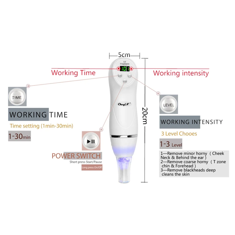 | Electric Dermabrasion Blackhead Remover Diamond Vacuum Sunction Pimple Acne Extractor Facial Pore Cleanser Skin Scrubber Peeling |