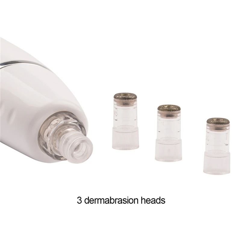 3 different degree of thickness of dermabrasion heads and 3 different size vacuum treatment heads.