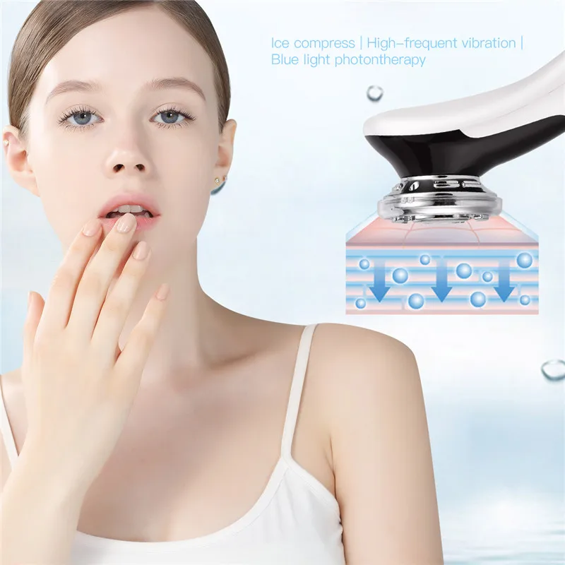| EMS Hot Cool Facial Massager Sonic Vibration Ion LED Photon Anti Aging Skin Rejuvenation Lifting Tighten Face Skin Care Beauty 4 |