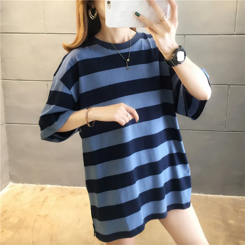 | harajuku Women Striped Oversize Tshirt Chic Fashion 90s Short Sleeve Loose T-shirts Female Casual Tops Clothes Streetwear Tees |