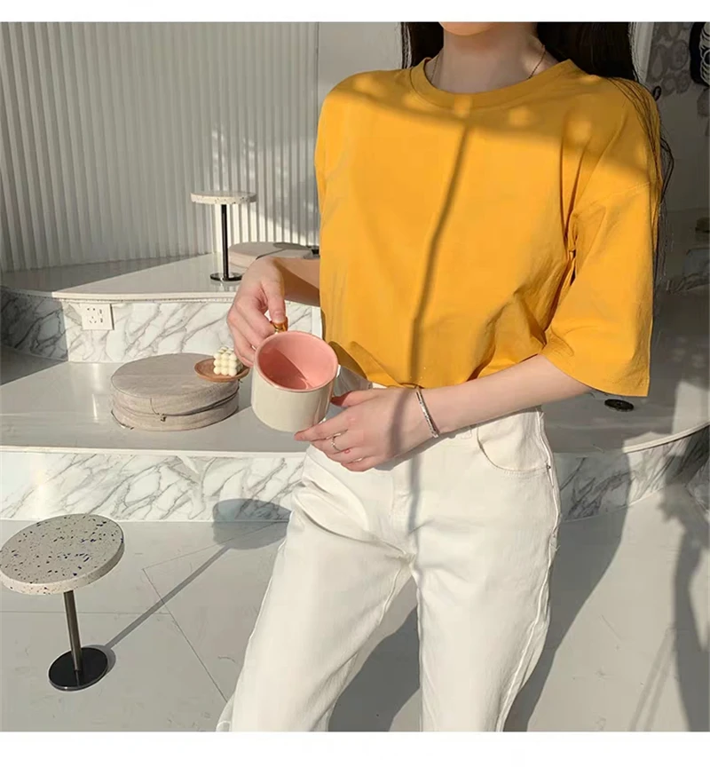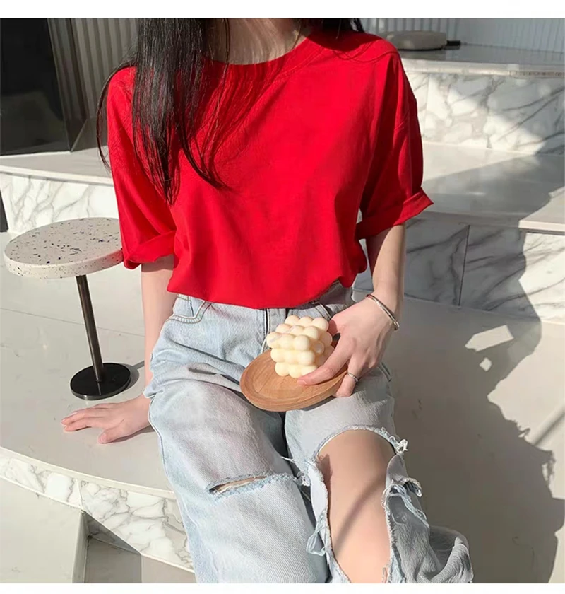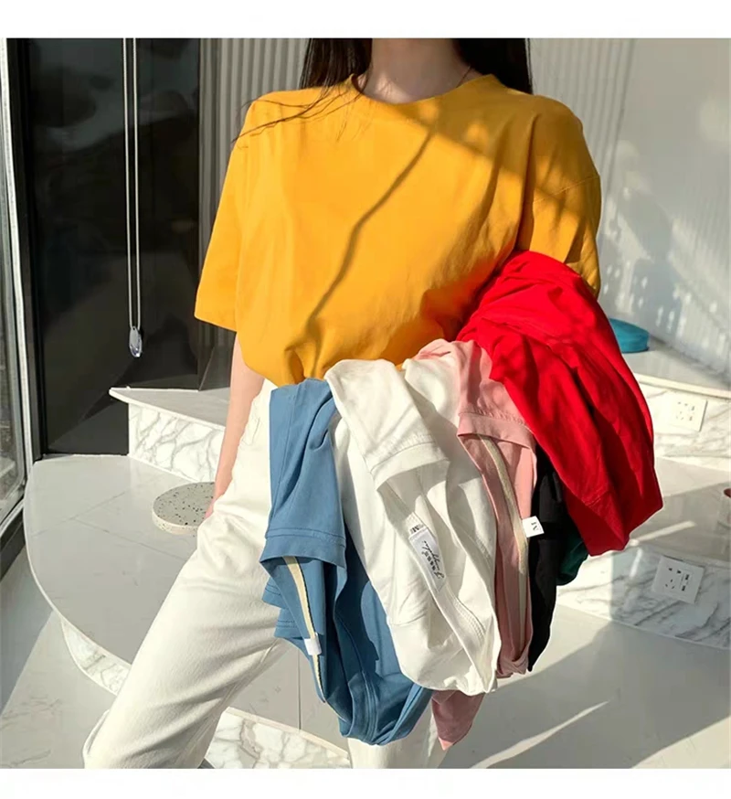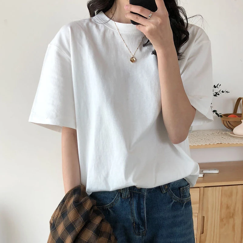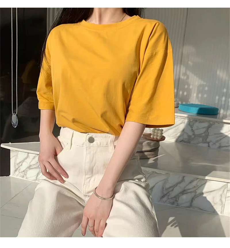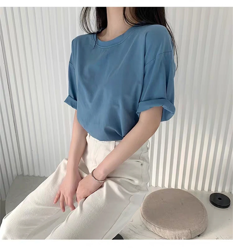 | Hirsionsan Basic Cotton T Shirt Women Summer New Oversized Solid Tees 7 Color Casual Loose Tshirt Korean O Neck Female Tops |