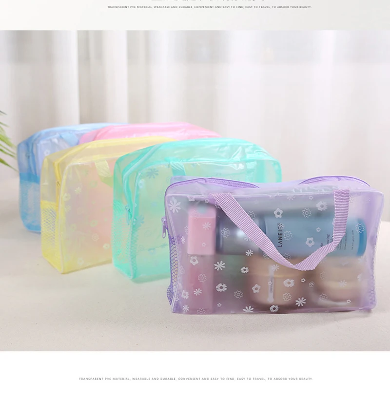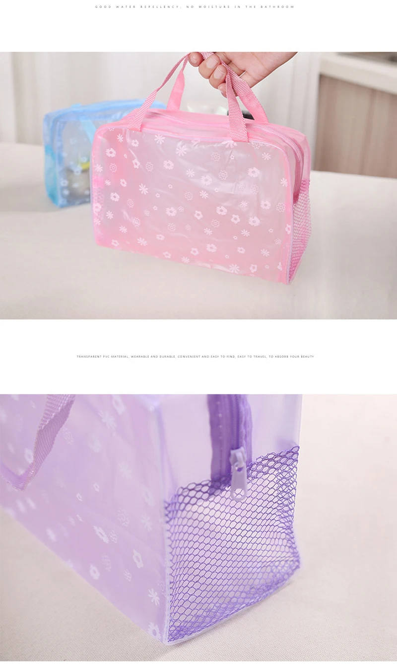 XZP 5 Colors Make Up Organizer Bag Toiletry Bathing Storage Bag women waterproof Transparent Floral PVC Travel cosmetic bag